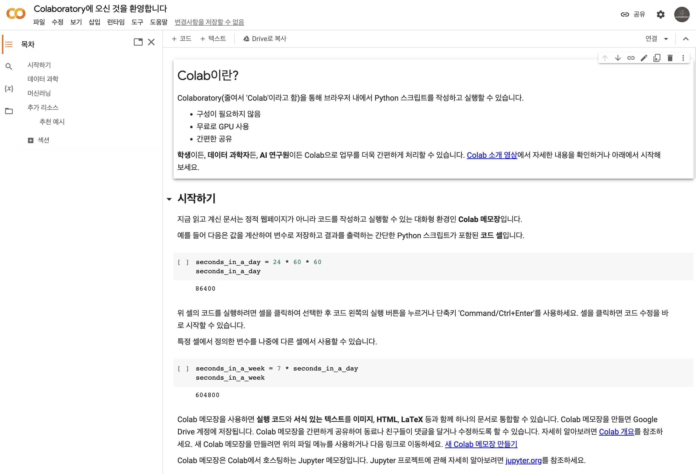파이썬 기초 ㅣ Colab 사용하여 파이썬 코드 연습하기