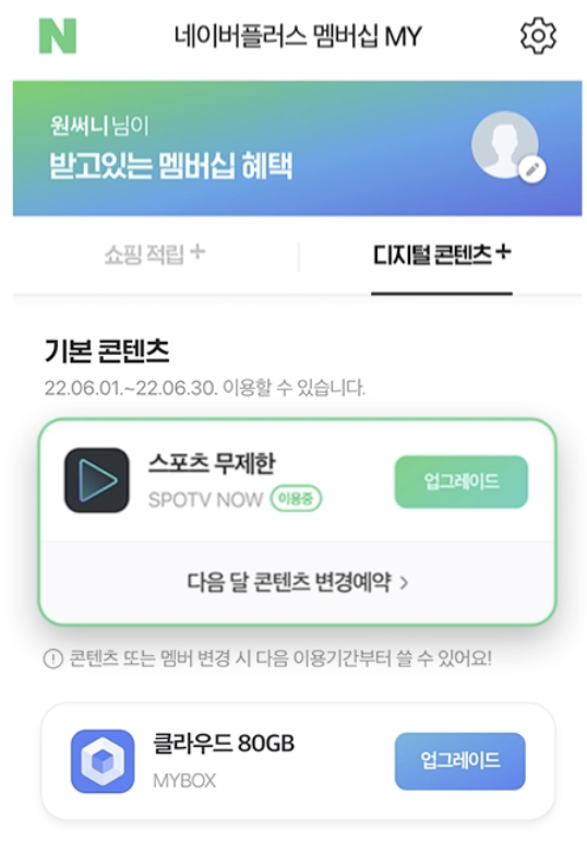 네이버에서 제공하는 네이버플러스 맴버십에 가입하신 후, 디지털 콘텐츠+를 [스포츠 무제한 선택]으로 해주시면 됩니다.