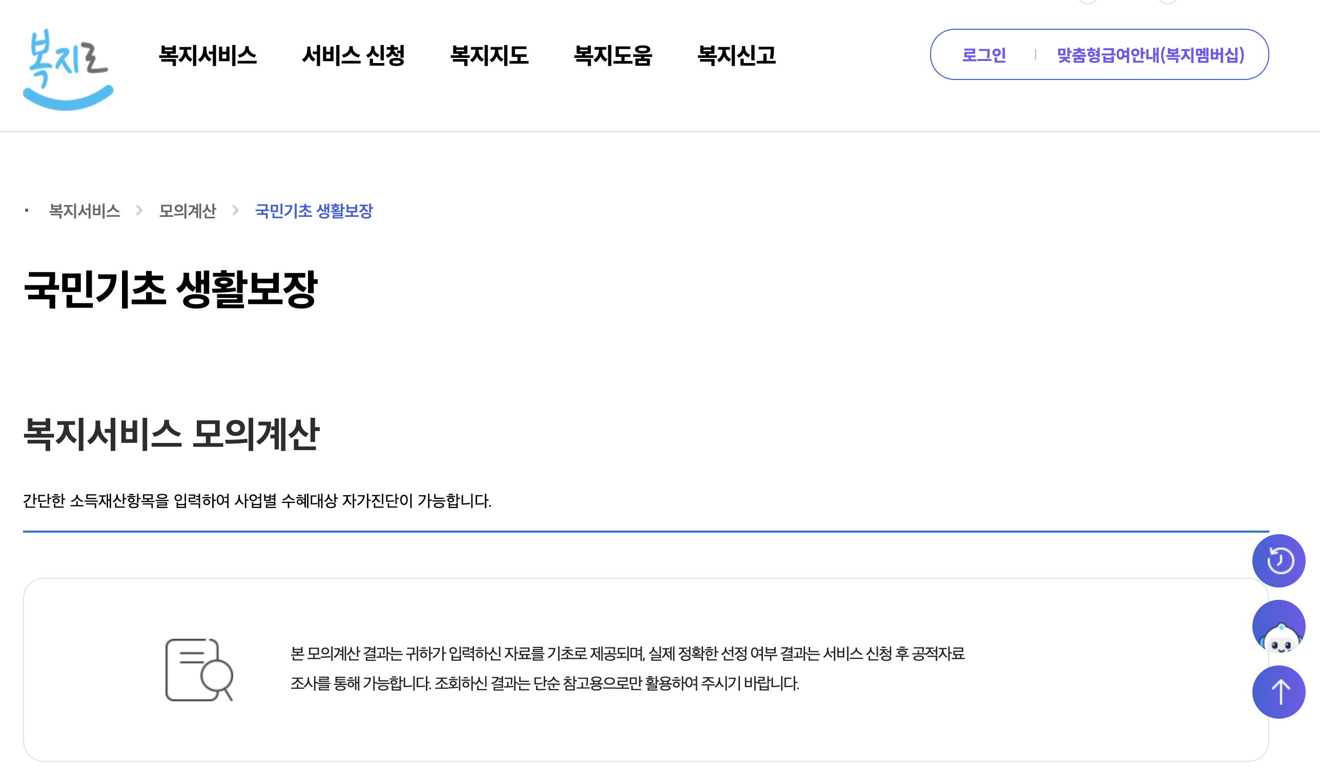 나의 중위소득은 얼마나 되는지 궁금한 경우라면 모의계산을 통해 중위소득을 확인해볼 수 있습니다. 중위소득은 복지로 홈페이지를 통해 간단하기 확인하실 수 있습니다.