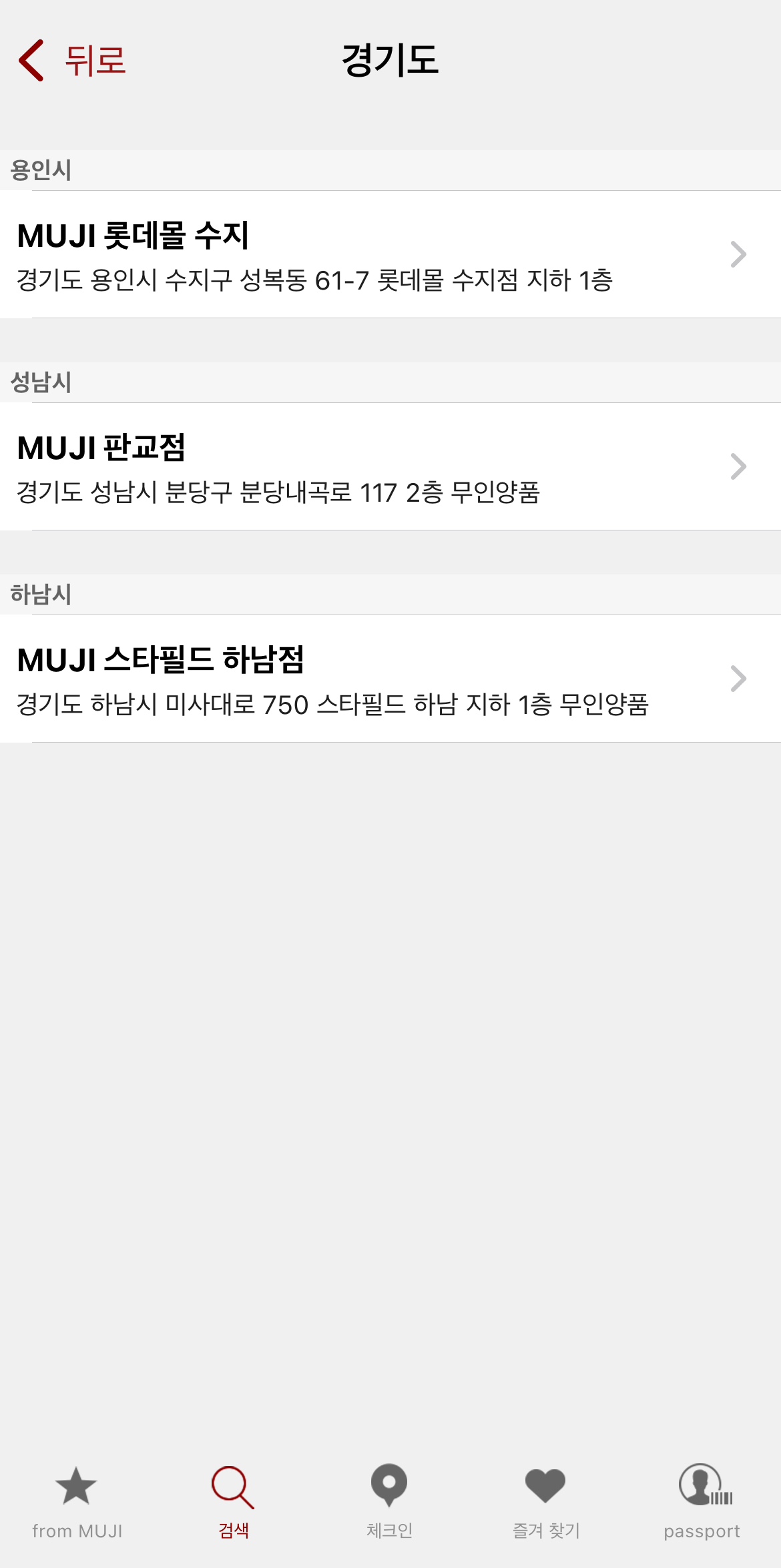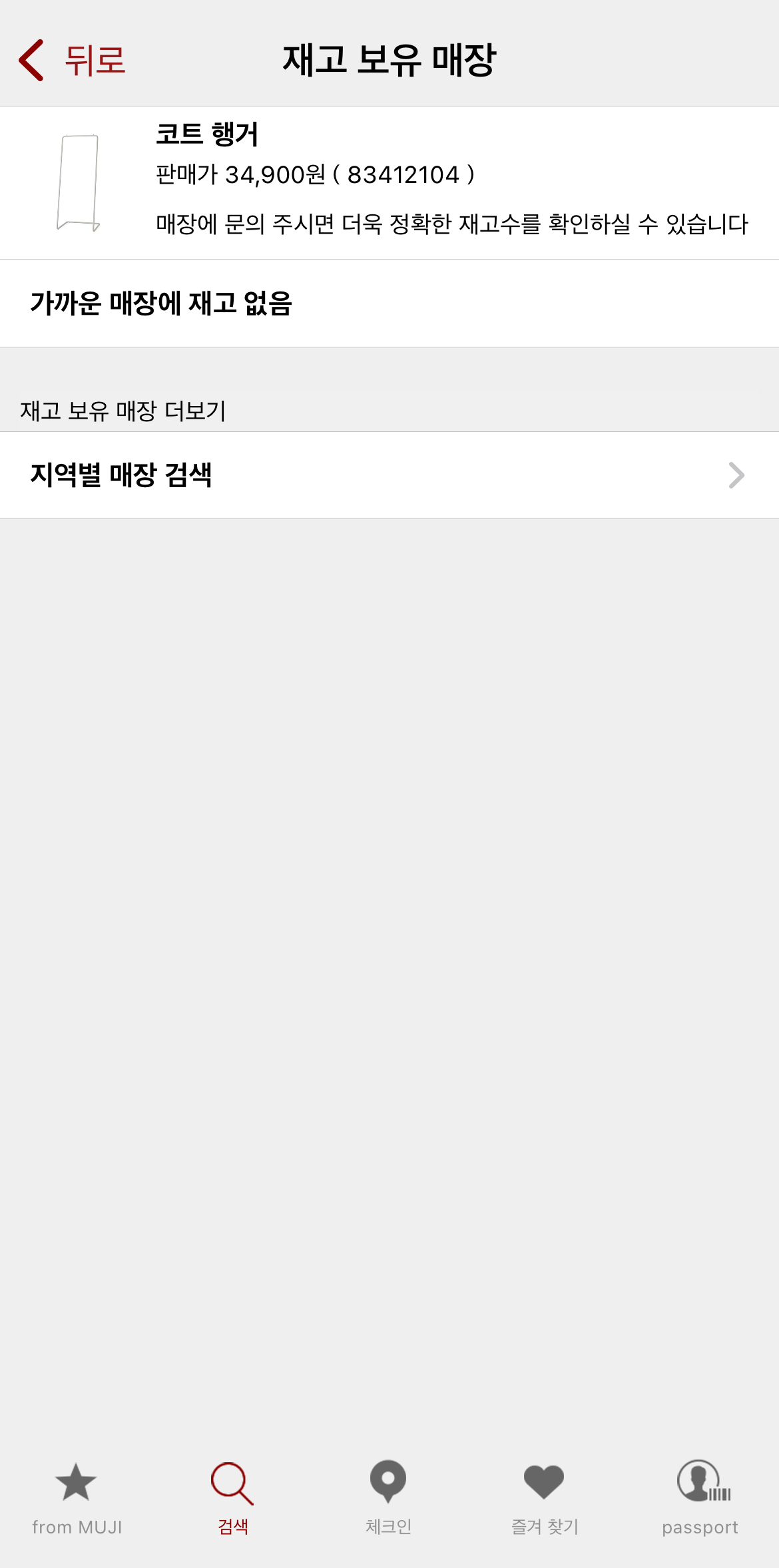무인양품은 MUJI passport라는 어플을 운영하고 있습니다. 무인양품 어플을 이용하면 쉽고 빠르게 내가 원하는 물건이 어느 지점에 있는지 확인할 수 있습니다.
