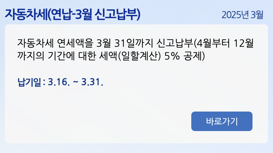 자동차세 3월 연납신청 | 연납신청 방법 연납할인 연납기간 연납 카드납부